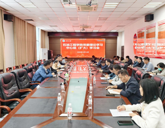 10月16日下午,球王会体育官方网党委理论学习中心组在石油科技大楼B113会议室开展集中学习扩大会,中心组成员、教工党支部书记、系(中心)主任、研究所所长、教学团队负责人以及各行政办公室负责人参加。会议由党委书记张伟主持。