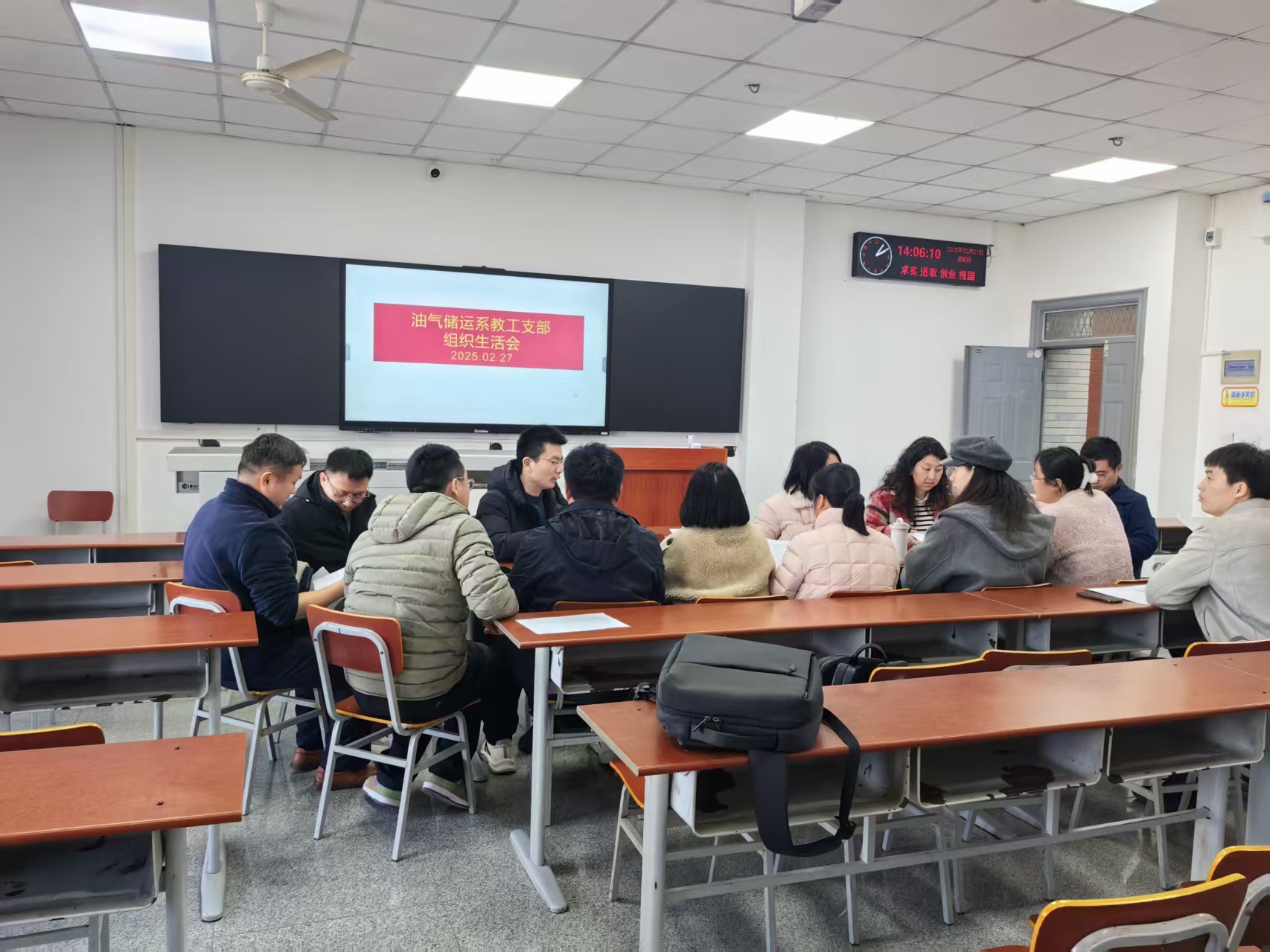在教学能力提升方面,支部以常态化教学研讨为抓手,助力教师精进教学技艺。每月定期组织党员教师开展教学专题研讨会,聚焦课程大纲优化、教学方法创新、重难点突破、信息化教学工具应用等核心议题,累计开展研讨活动9场;建立“优质课观摩+教学反思+集中点评”的闭环提升机制,组织教师观摩校级以上优质课16堂,撰写教学反思报告38份,针对教学中的共性问题形成解决方案12项。同时,搭建跨课程教学经验分享平台,邀请教学效果突出的党员教师分享授课心得与课堂管理技巧,推动教师之间互学互鉴。通过系列研讨活动,共优化核心课程大纲,创新案例教学、项目式教学等教学方法,其中《工程热力学》、《工程流体力学》2门课程新入选湖北省一流课程,教学研讨成效显著。