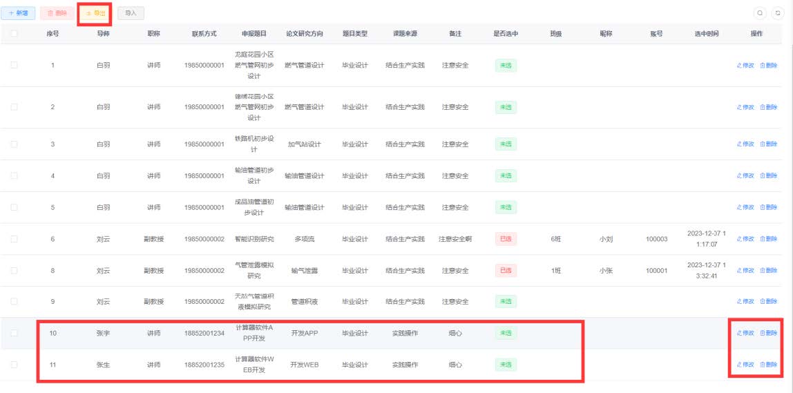 针对本科毕业设计选题环节存在的流程繁琐、匹配效率低等问题,支部主动作为,由系主任张兴凯老师组织3名经验丰富的党员教师组建研发小组,历时30天自主研发球王会体育官方网本科毕设选题系统。该系统覆盖油气储运、石油工程等4个专业,可满足每年500余名本科生的毕业设计选题需求,充分考虑了不同专业的毕业设计特色与需求。