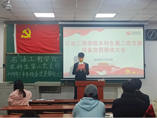 (通讯员 向雪芹/文 魏莉桐/摄)11月20日晚,本科生第二党支部于武教B-211召开2024年下半年预备党员接收、预备党员转正暨11月主题党日活动。本次会议由张硕主持,支部书记周晓峰和全体党员参加。