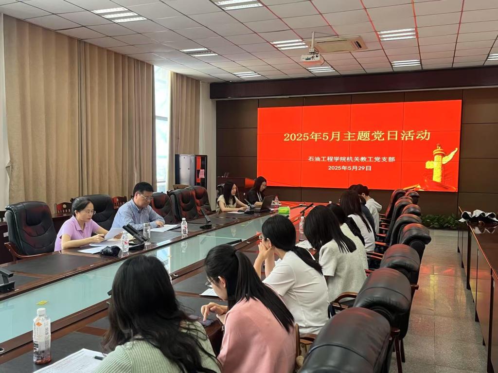 (通讯员 韩清越 彭景雯)为深入学习贯彻党的二十大精神和上级党委最新部署要求,推动党建与中心工作深度融合、同频共振,激发党员队伍担当作为的内生动力,球王会体育官方网机关教工党支部于2025年5月29日14:30在石油科技大楼B113室召开五月主题党日活动。本次活动以“强担当 重实干 促融合”为主题,由党支部书记杨小玉同志主持,聚焦任务落实与问题破解,共谋学院发展新篇章。