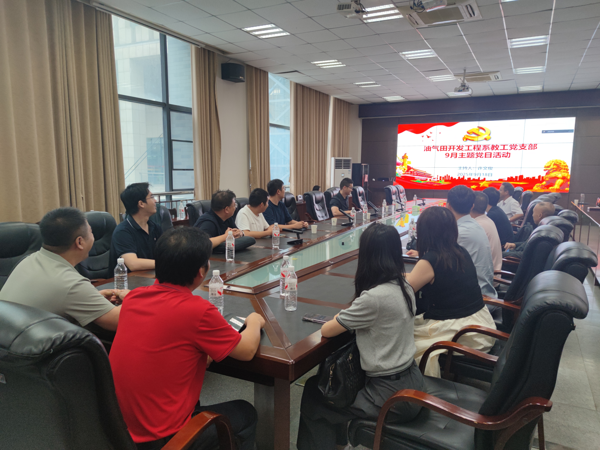 9月28日下午,油气田开发工程系教工党支部在石油科技大楼B113会议室召开9月主题党日活动,主题为“巩固拓展学习教育成果,推进作风建设常态化长效化”。活动由党支部书记许文俊同志主持,全体教工党员参加。