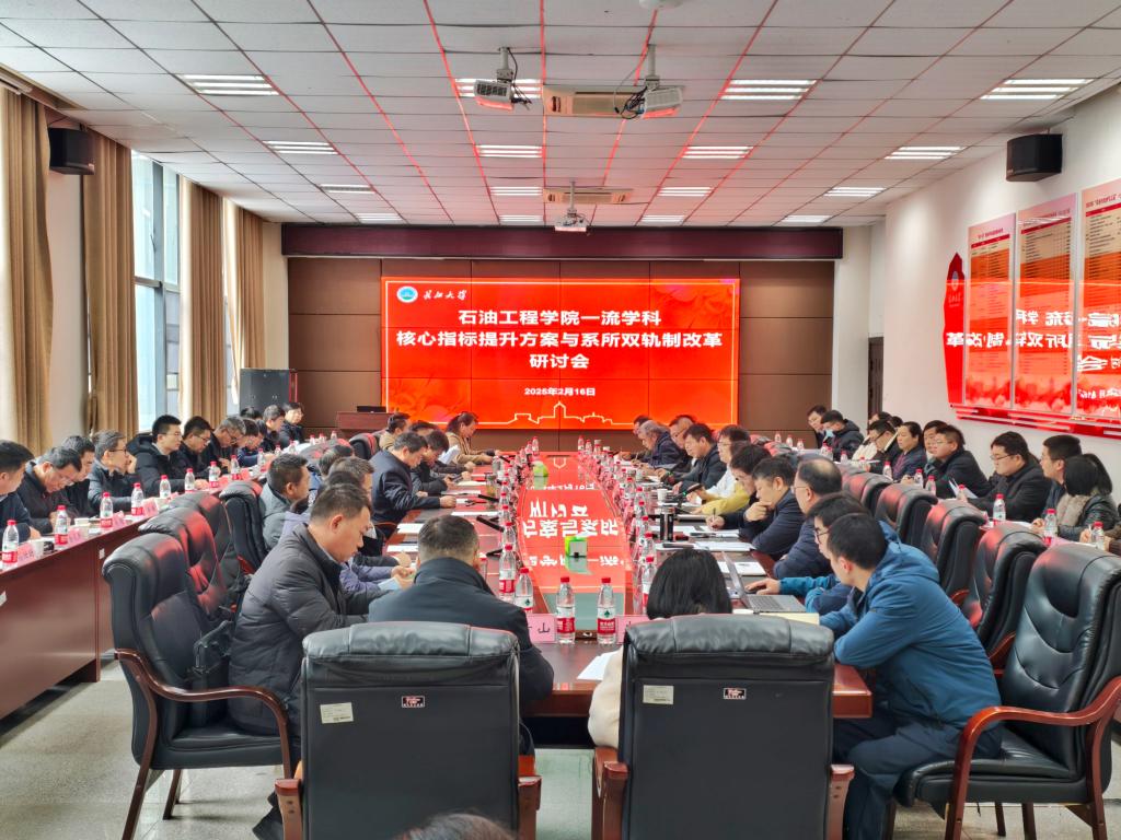 2月16日上午,球王会体育官方网在石油科技大楼B113召开一流学科核心指标提升与系所双轨制改革研讨会,全面剖析石油与天然气工程学科建设核心指标进展情况,锚定学院高质量发展目标,凝心聚力,共谋举措。校党委常委、副校长江厚顺出席会议。