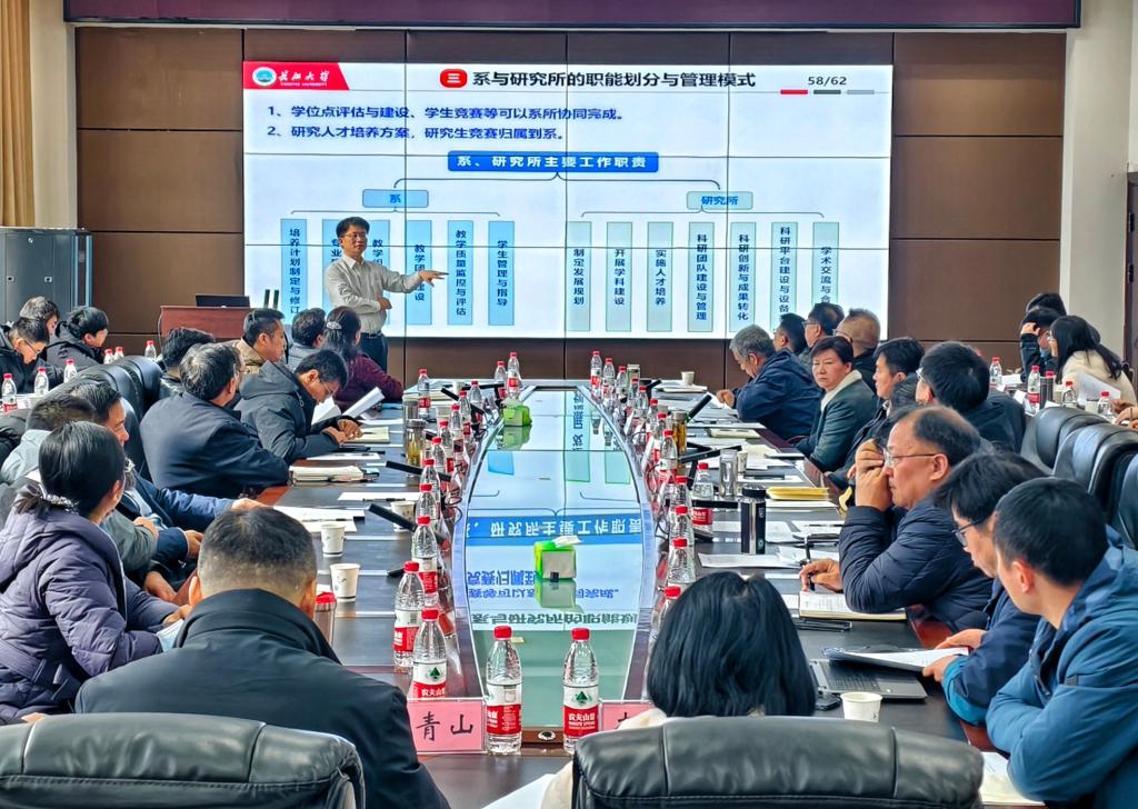 学校研究生院院长赵辉、平台与实验室管理处长张菲菲、武汉校区党工委书记崔青山等职能部门负责人,以及学院党政班子、资深教授和中青年教师代表70余人参加会议。