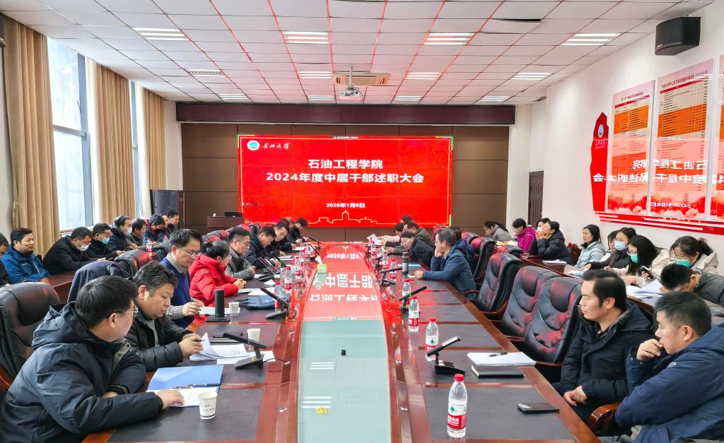 2025年1月8日下午,球王会体育官方网在石油科技大楼B113会议室召开2024年度工作总结暨中层干部述职大会。学校中层干部考核第四组副组长、武汉校区党工委书记崔青山出席指导,学院班子成员和全体教职工参加会议。