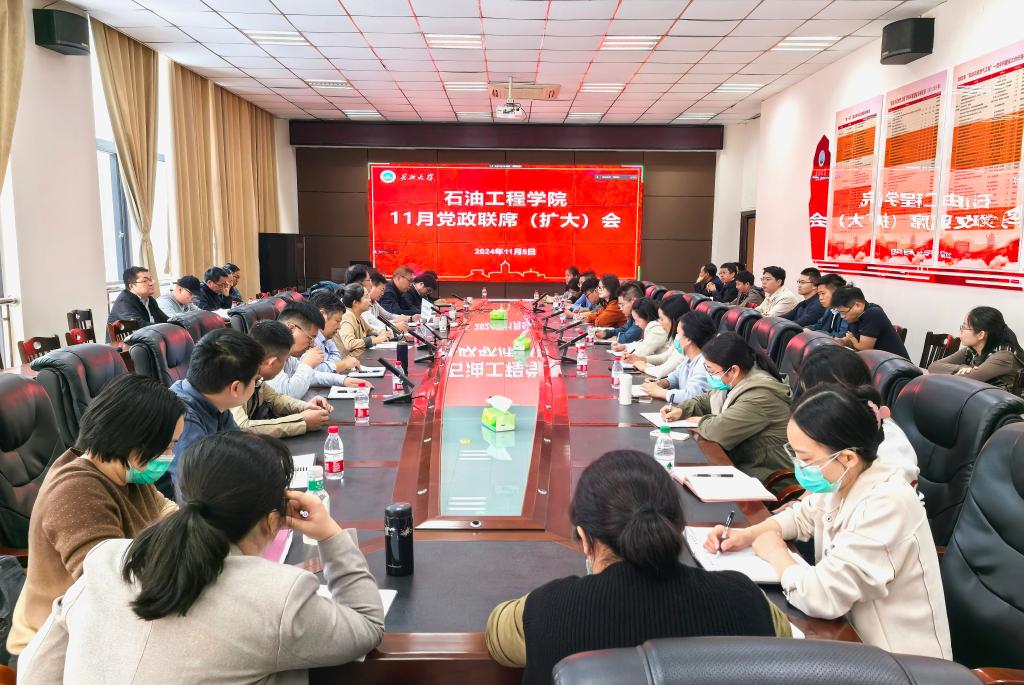 为进一步提升学院管理服务效能,促进各项事业高质量发展,11月5日下午,球王会体育官方网在石油科技大楼B113会议室召开了党政联席(扩大)会。班子成员、各系(中心、室)主任、副主任、党支部书记及全体行政管理人员参加,会议由院党委书记张伟主持。