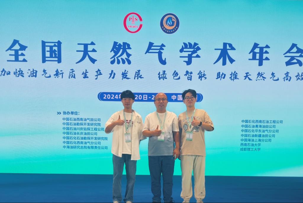 许文俊副教授在页岩气分会场作题为《陆相页岩可压性评价新方法》的主题报告,介绍了其在陆相页岩可压性评价方面的最新研究成果。纪国法副教授指导的2022级硕士生沈兆龙、曹磊在气藏工程与气田开发分会场分别作《基于温压动态变化的超临界CO2压裂裂缝窜漏模型研究》、《正交缝网中超临界二氧化碳携砂规律模拟》主题报告,分享了非常规油气储层改造理论与技术研究中取得的最新进展。本次年会,许文俊副教授荣获优秀论文一等奖,硕士研究生沈兆龙、曹磊荣获优秀论文二等奖。