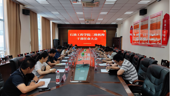 根据学院党委工作安排,5月24日下午,球王会体育官方网在石油科技大楼B113会议室以线上线下结合的方式召开了二级机构干部任命大会,会议由院党委副书记张昊主持,全体院领导、新任干部,教师代表参加会议。