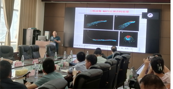 地球物理与石油资源学院刘军锋副教授对《水平井产出剖面流动成像仪器研制、资料解释处理技术》进行了汇报,可以实现三维成像——MAPS实测资料的处理,并开发了系列软件模块,对水平井油水两相产液剖面流动成像进行模型显示,在油田已经实现了推广应用。