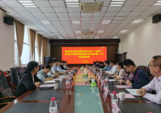 (通讯员:杜婷)5月7日下午,中国石油大学(华东)球王会体育官方网党委书记张展、副院长齐宁、党委副书记陈银吨一行7人到访学院,探讨交流学科建设、人才培养等方面内容。本次交流会由学院院长江厚顺主持,学校研究生院院长赵辉、学院党委书记张伟,副院长李忠慧、张引弟、杨波、张菲菲,党委副书记刘娥等院领导及学院教师代表出席本次会议。