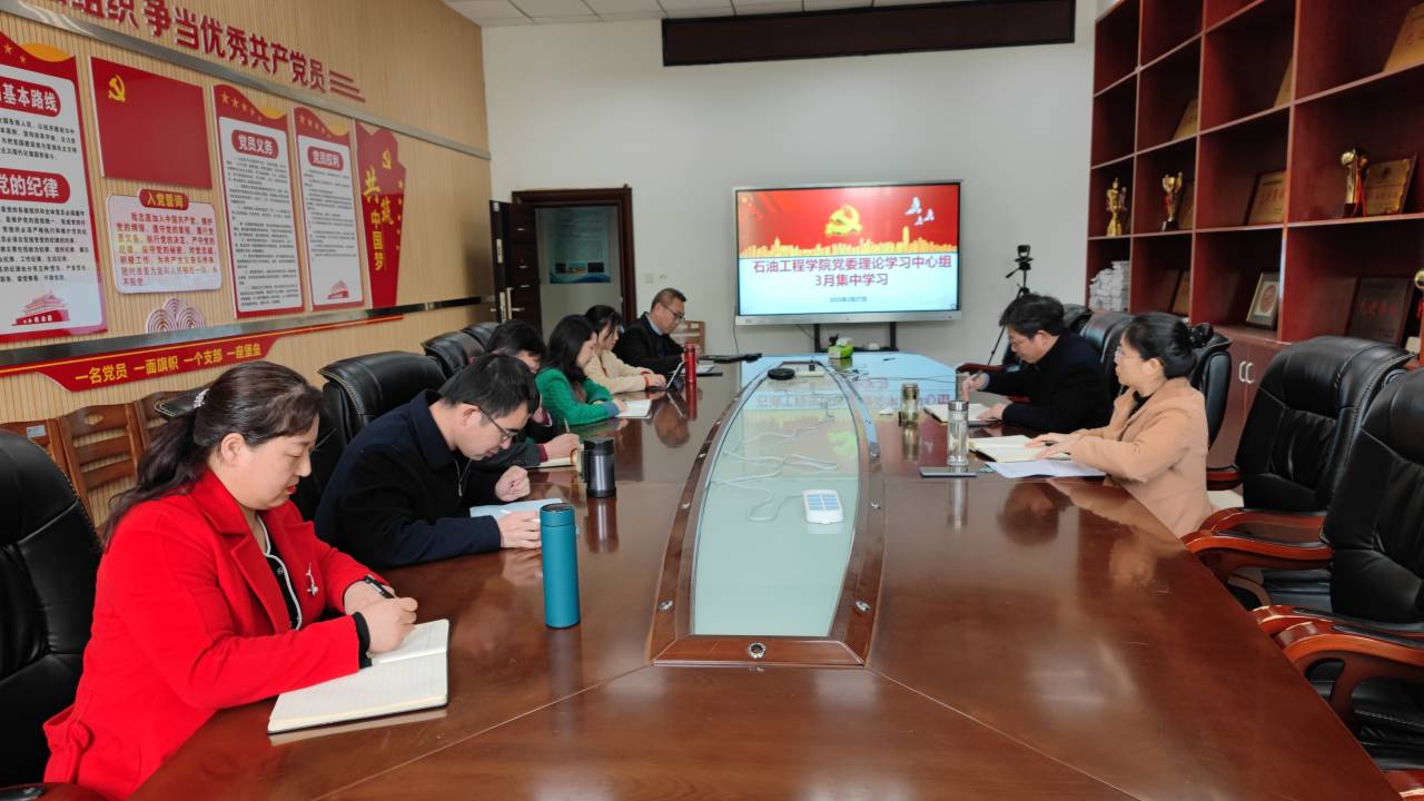 3月27日下午两点半,学院党委理论学习中心组在石油科技大楼C111会议室开展3月份集中学习,会议由学院党委书记张伟主持,中心组全体成员参加。