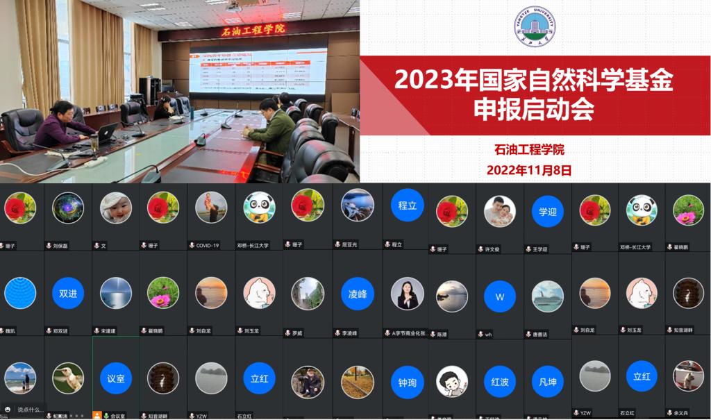 (通讯员 杨小玉)为进一步落实学校2023年国家科学基金申报工作部署会会议精神,扎实做好2023年度国家自然科学基金项目申报工作,11月8日下午,学院2023年国家科学基金申报启动会在石油科技大楼B113室线上线下同步召开。院领导、学科办和所有符合申报条件的老师参加会议,会议由院长江厚顺主持。