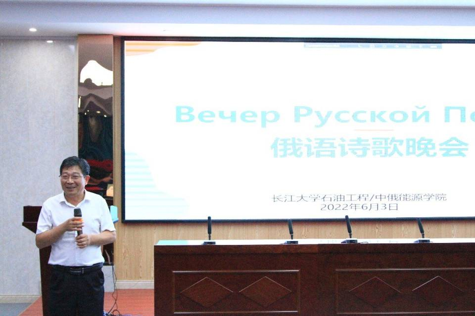 他表示:2019年他曾经访问过俄罗斯,今晚的诗歌晚会令他不自觉的翻出以前的照片浏览,优美的诗歌韵律伴随着美丽风景照片、视频带领他重温了一遍俄罗斯美丽风景。此次晚会感受颇多,我们大一的新生在加入中俄班短短2个月由零基础可以流利的朗诵俄语诗歌,同学们的学习效率令人欣慰,也感谢外教与能源学院老师对学生的精心培养,让我感受到了异国语言的魅力和风情同时,为我们进行“一带一路”国际化人才培养做好了准备。同时也感谢同学们在端午佳节之际,为我们呈现一场“诗歌的盛宴”。