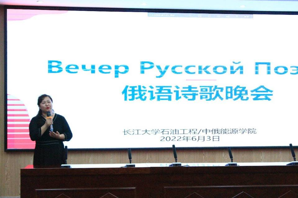 Елена Сергеевна老师(俄籍教师)表示正值这个美好的晚上,我们将集聚一堂,品味俄语诗歌并感受其深厚的民族底蕴和震慑人心的魅力。