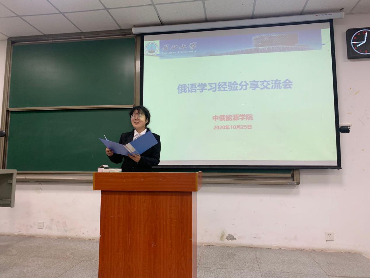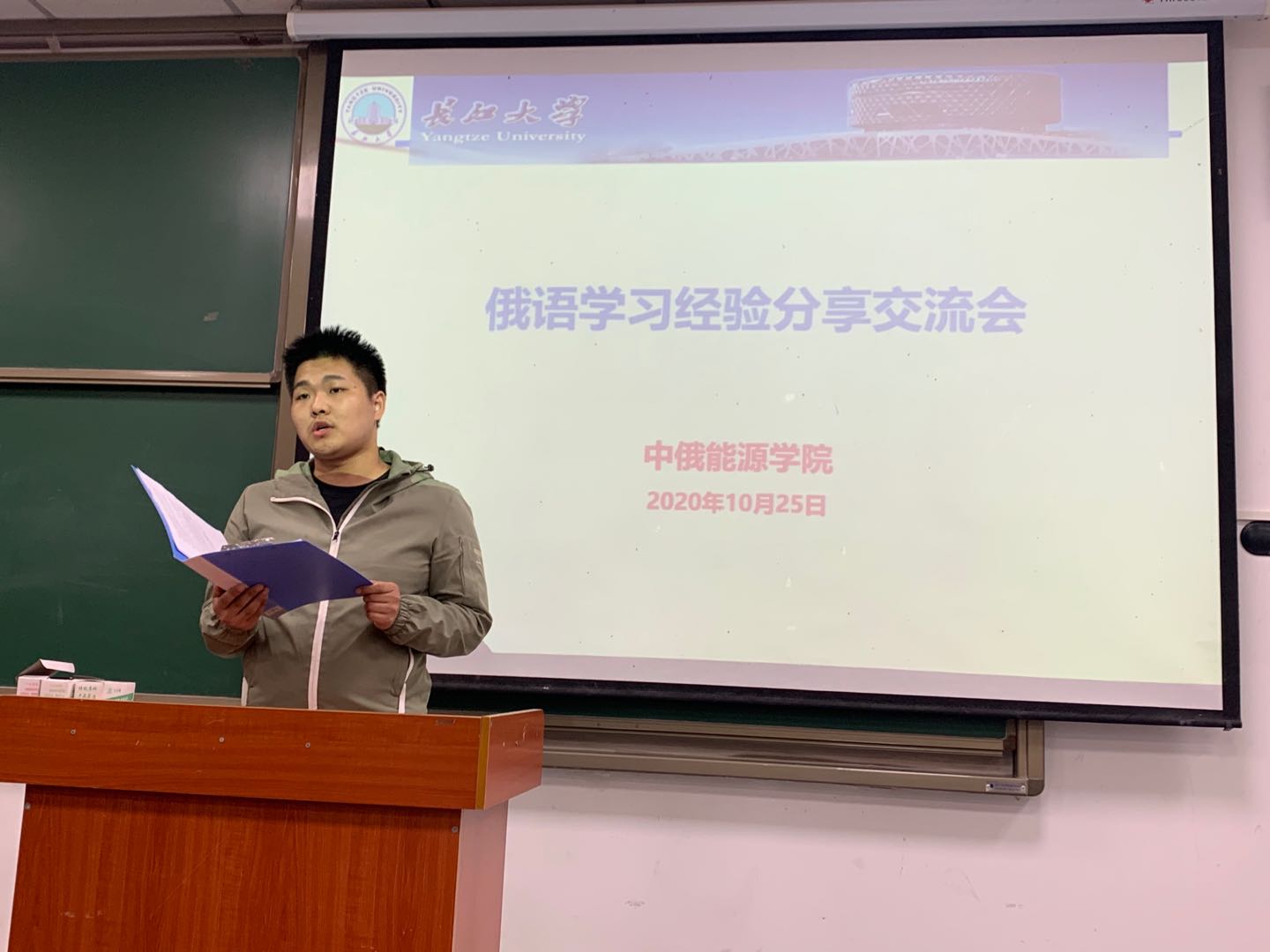 10月25日晚,球王会体育官方网在武教A106举行了“俄语学习经验分享交流会”。中俄能源学院科长喻选梅老师、文丽晨老师、俄语教师王翌婵博士、中俄试点班18级学生黄盟、金铭、刘玉龙、魏江飞及中俄试点班19级全体同学参加了此次交流会。会议由中俄能源学院文丽晨老师主持。