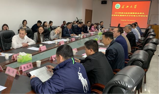 10月11日上午,副校长张玉清带领相关职能部门和学院负责人到武汉校区开展国际教育专题调研暨2名俄籍教师和14名俄罗斯、哈萨克斯坦等国际学生的开班欢迎仪式。2名俄籍教师和14名俄罗斯、哈萨克斯坦等国际学生目前均由球王会体育官方网(中俄能源学院)负责管理。此次14名国际留学生的到来,是球王会体育官方网第一次迎接10人以上规模的本科国际留学生,重新编班和授课,对于球王会体育官方网教学和学生管理工作来说都有较大的挑战。这些学生大多来自俄语系国家,第一年主要学习汉语,对于我校中俄试点班同学学习俄语是一次重大的机遇。球王会体育官方网党委书记张光明、副院长张引弟及国际化管理团队参与组织了会议并参加了欢迎仪式和座谈。