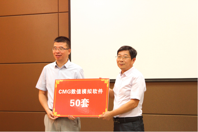 据悉,95级校友刘大宝现任北京中科合力技术发展有限公司副总经理,是CMG中国区首席代表,此次其捐赠包含50套CMG数字模拟软件,树高千尺不忘根,他表示希望通过自己的行动为母校的发展建设贡献一份力量。