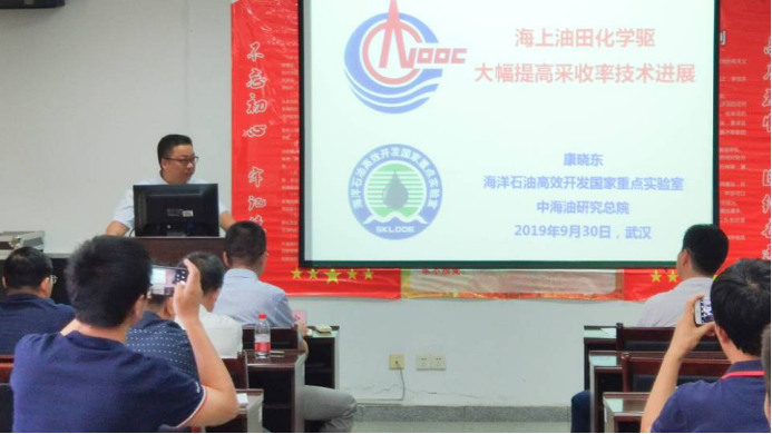 会中,校友刘大宝、康晓东于石油科技大楼C201分别就《CMG化学驱数值模拟》、《海上油田化学驱大幅提高采收率进展和探索》为主题向在座领导及学子进行学术报告。
