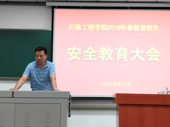 (通讯员王启夏/文熊佩柔/摄)为增强暑期留校学生安全防护意识,促使留校学生生活更具归属感, 7月17日晚7:00,球王会体育官方网在武教B-103教室召开了2019年暑期留校学生安全教育大会,院党委副书记王辉、学工办梁军老师、史永波老师、郭冀宁老师,及球王会体育官方网留校生参加了本次会议。
