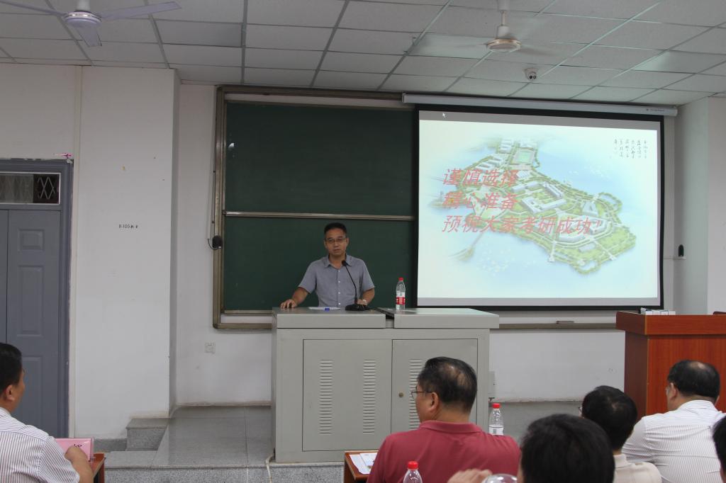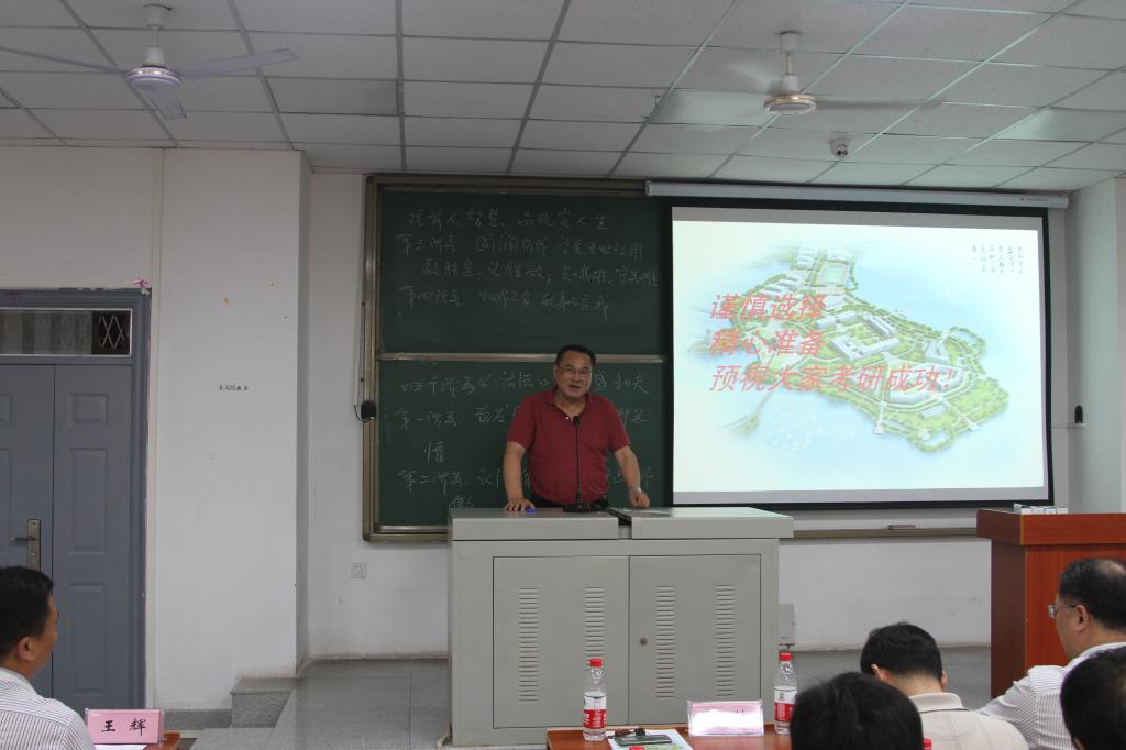 随后,导师代表欧阳传湘教授以一个个研究生师兄师姐的鲜活事例娓娓道出了读研对人生的重要影响。喻高明教授则以“观前人智慧,品现实人生”为题分享了曾国藩关于人生应该有的四个阶段,即“奋发图强,克服自我懈怠;认清自我,不断修正自我;圆润自我,学会经世致用;物我不分,献身而忘我”,并勉励大家把握好人生的出场顺序,才能成就自我,机会是留给有准备之人的。赵林教授从历年来考研国家线分析了“如何合理设定各科分数目标,争取单科和总分都上线。”