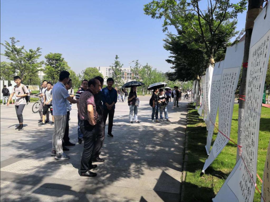 (通讯员 沈伟正)青春心向党,建功新时代。为隆重纪念“五四运动”一百周年暨庆祝伟大祖国七十华诞,2019年5月23日,球王会体育官方网油工21501班学生祁倪军在武汉校区A教入口处举办以“逐梦前行,不负韶华”为主题个人书画作品展。书画作品展得到了球王会体育官方网团委的大力支持,吸引了校区广大师生前来观展。球王会体育官方网党委书记朱业宏老师,亲自为书画展题词,以示祝贺。