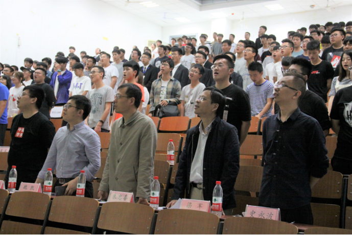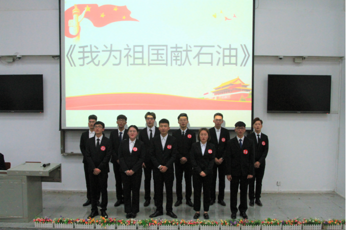 大会开始前,由油工21804班同学领唱,在场全体师生合唱《江汉石油之歌》,重温了江汉石油人献身祖国事业的雄心壮志。合唱完毕,主持人介绍了“钻井821班”奖学金的设立和发展,向设立该奖项的优秀校友们表示感谢,并鼓励同学们向优秀校友学习,心怀感恩,回报社会。