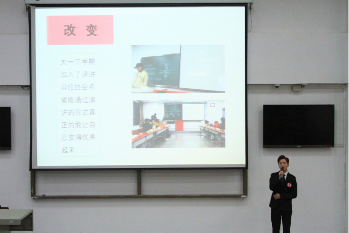 随着主持人的介绍,1至23号选手依次上台演讲。1号选手胥涛通过介绍自己理解的个人与团体的关系,很好地诠释了互帮互助才是奉献,心怀感恩才是传承;7号选手卢闫从做人、学习、做事三个方面展开,将青春活力融入五四,将五四精神融入生活,为大家介绍了不一样的大学生活;22号郭少坤同学和大家谈自己在国旗班的训练经历,用汗水浇灌青春,用行动践行爱国。