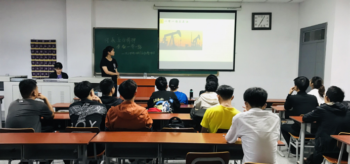 了解一带一路,拥抱世界经济。在习得五四精神后,主讲人将其与现代时事融合延伸,从实际出发具体说明谈谈该如何落实到具体的努力方向。借由一段央视微视频引出对“一带一路”倡议的介绍,主讲人通过对其定义、内涵、意义等方面的详细描述加深同学们对“一带一路”的理解。与此同时,她从本专业角度,借当今经济发展趋势,向大家展示一带一路与石油的时代背景与国际合作,并强调世界经济对石油行业未来发展的重要作用。据悉,油工(中俄)21801便是在一带一路大背景下成立的。