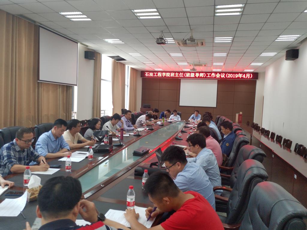 4月25日下午2:30 ,球王会体育官方网在石油科技大楼B113会议室召开全院班主任(班级导师)4月份工作会议,党委副书记王辉主持会议。