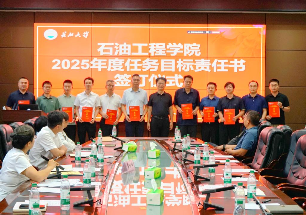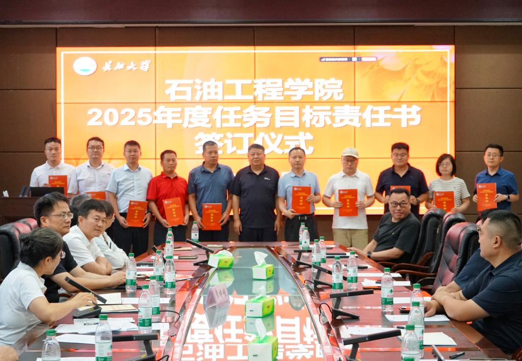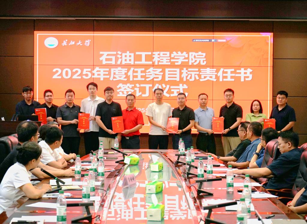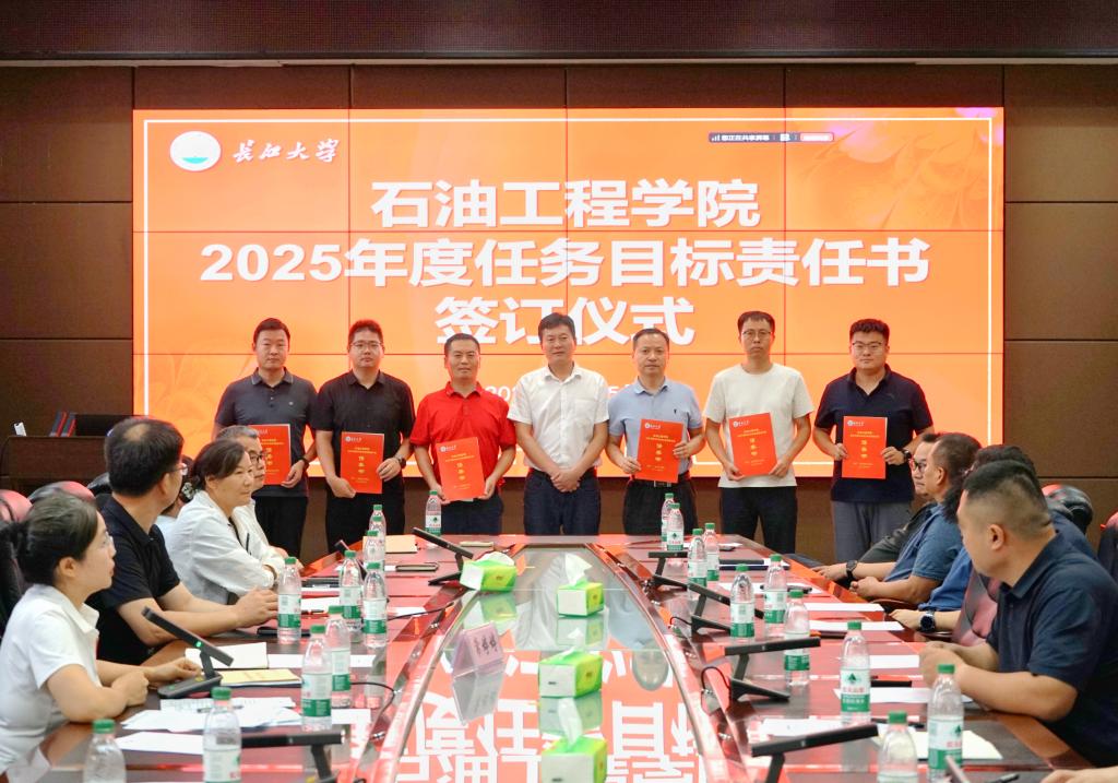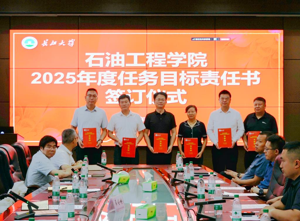 凝心聚力,共谋发展。7月5日下午,球王会体育官方网系所双轨制机构负责人2025年目标责任书签订仪式,在石油科技大楼B113会议室顺利举行,这标志学院系所双轨制机构改革正式落地推行。会议由学院党委书记张伟主持,全体教职工参会。