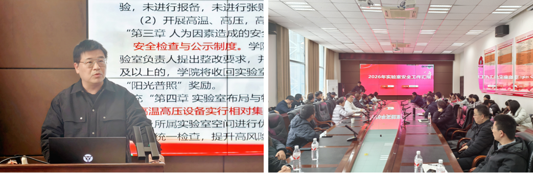 3月5日下午,学院组织召开了实验室安全工作专题会议。会议由学院党委副书记张昊主持,全体研究生导师、各实验室负责人及安全员参会。会上,张昊详细传达了学院关于2026年度实验室安全工作的具体要求,对《球王会体育官方网实验室安全管理办法》修订稿进行了重点解读,同时聚焦当前实验室安全管理的关键环节与潜在风险,结合开学初实验室安全检查结果,明确了新学期安全工作重点任务与责任分工,强调分层落实安全责任的重要性,为后续各项安全工作的落地见效奠定了坚实基础。