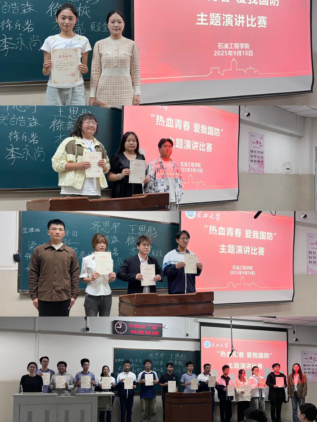 (通讯员 黄西贝 周雨薇)为深化新生国防教育,弘扬爱国主义精神,9月18日晚,球王会体育官方网于12教302教室成功举办“热血青春,爱我国防”2025级新生主题演讲比赛初赛。19名参赛选手以饱满的热情和深刻的思考,抒发了对国防事业的理解与热爱,展现出石油学子昂扬的精神风貌和坚定的理想信念。本次活动由储运12503班周宇欣同学主持,2025级新生辅导员周雨薇、陈金建,兼职辅导员陈真、崔姊威以及2025级全体新生共同参与。