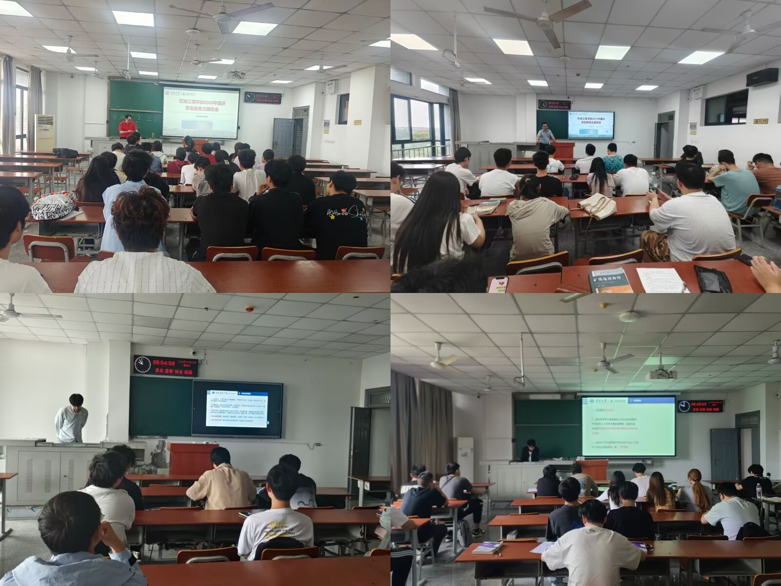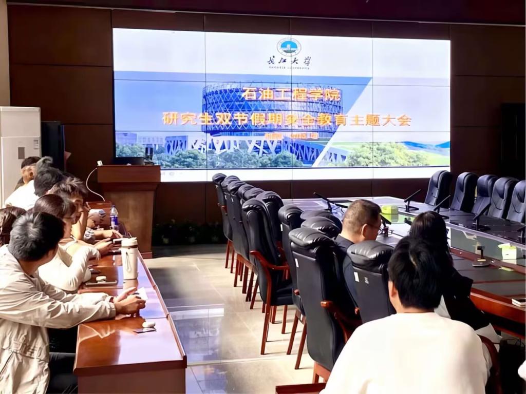 (通讯员 韩清越)国庆节假期将至,为切实增强学生的安全防范意识,保障全体学生假期安全,9月29日上午9点,球王会体育官方网组织研究生于石油科技大楼B113召开研究生双节假期安全教育主题大会,同时,球王会体育官方网也组织本科生各班级开展了国庆假期前安全教育主题班会,本次安全班会旨在应对假期前后校园及社会层面的安全风险,筑牢校园安全防线。