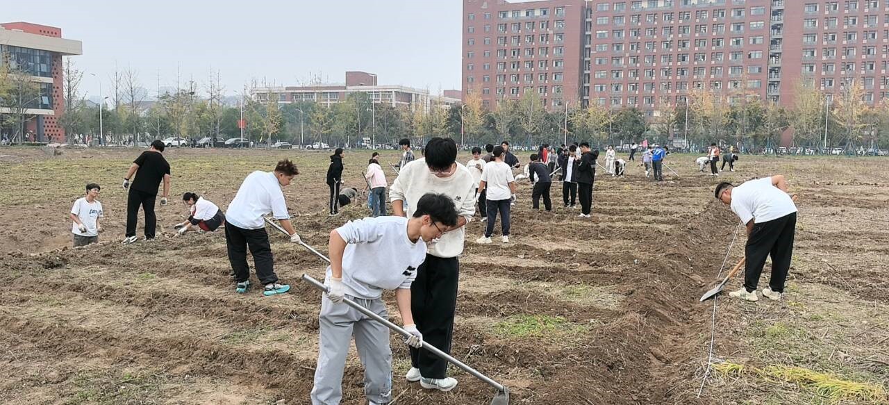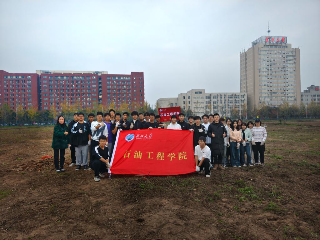随后,师生们积极投入到基地的首次劳动实践中。大家佩戴手套,手持锄头,俯身弯腰,认真清理散落在地的石块与砖块。尽管地块面积广阔、任务繁重,但同学们热情高涨,干劲十足。现场气氛热烈而有序,大家分工明确、配合默契,充分展现了石油学子团结协作、吃苦耐劳的优良品质和积极向上的精神风貌。
