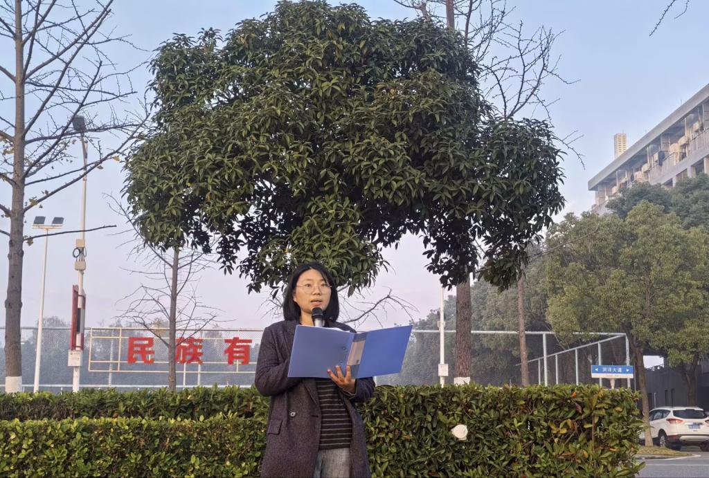辅导员商麟鑫进行国旗下讲话,她首先对参与大学生创新创业项目的同学给予鼓励,希望同学们在参与科研训练的过程中提高创新意识与科研思维水平,将理论与实践紧密联系起来,为将来能源报国筑牢学术基础。她还介绍了学校近期承办的“王涛英才奖学金颁奖典礼”相关情况,并解读了原石油工业部部长王涛同志提出的“三争精神”:“追求卓越就是争气,攻坚克难就是争气,为国奉献就是争光!”商老师提醒同学们要珍惜课堂时光、主动钻研学习,以王涛英才为榜样践行“三争”精神,用实干书写石油学子的青春答卷。