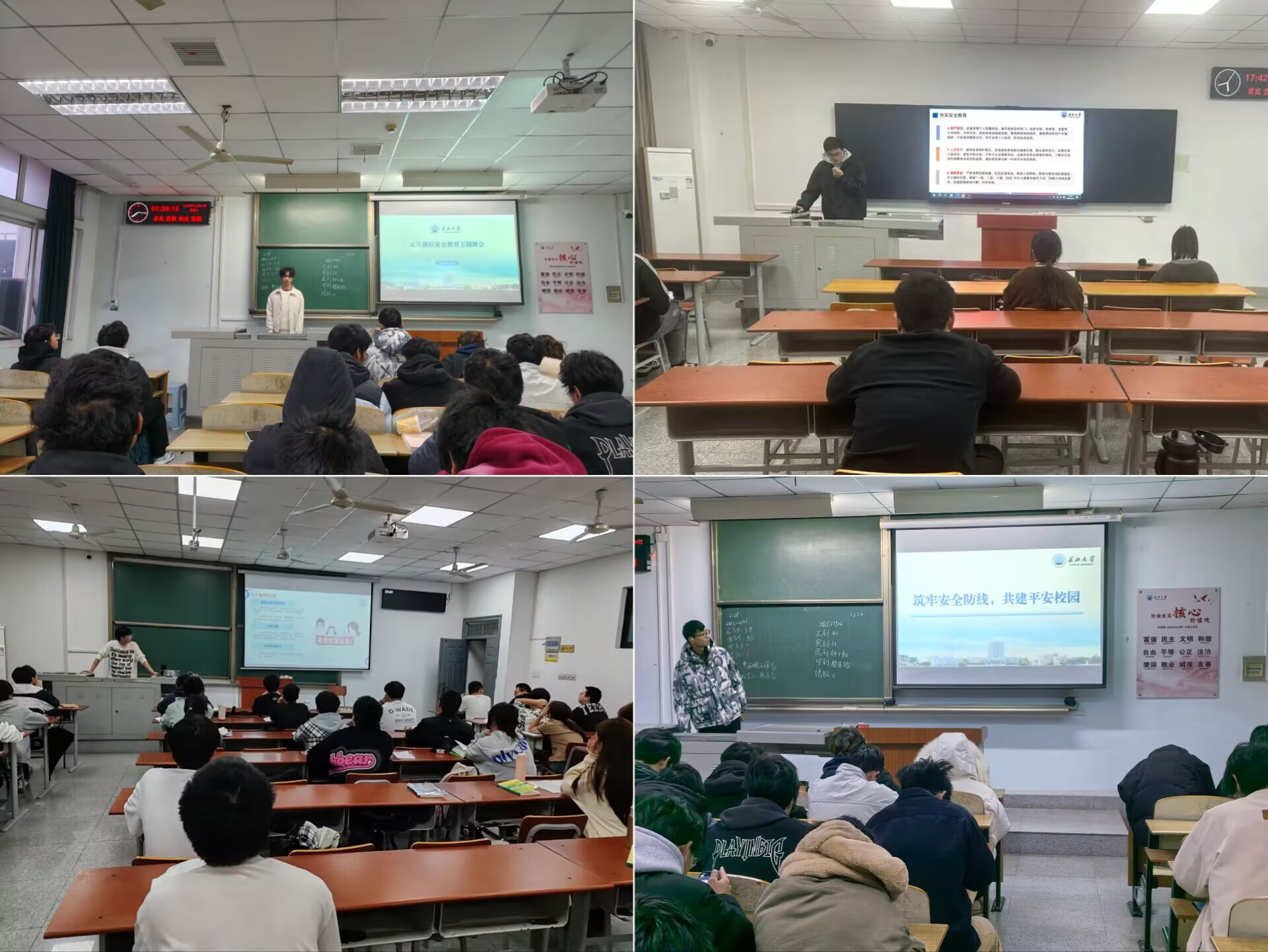 此次主题班会是学校强化学生安全教育管理的具体举措,不仅覆盖在校期间的安全重点,更针对元旦假期期间的交通安全和防诈骗等内容做出强调,有效提升学生的安全防护意识与自我保护能力,为平安校园的建设筑牢坚实基础。