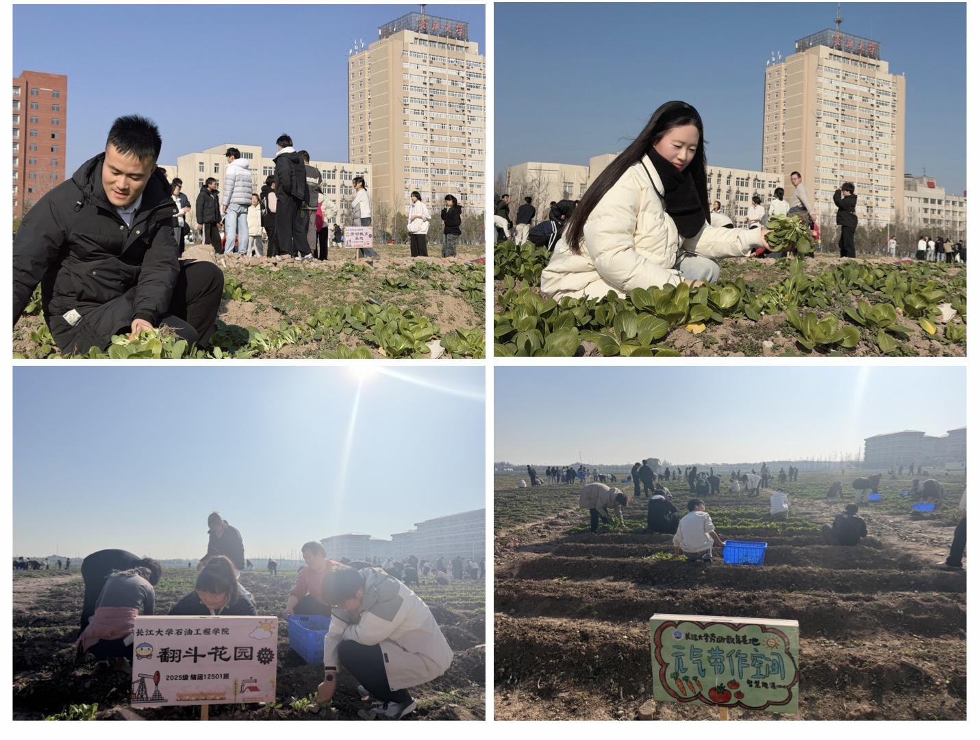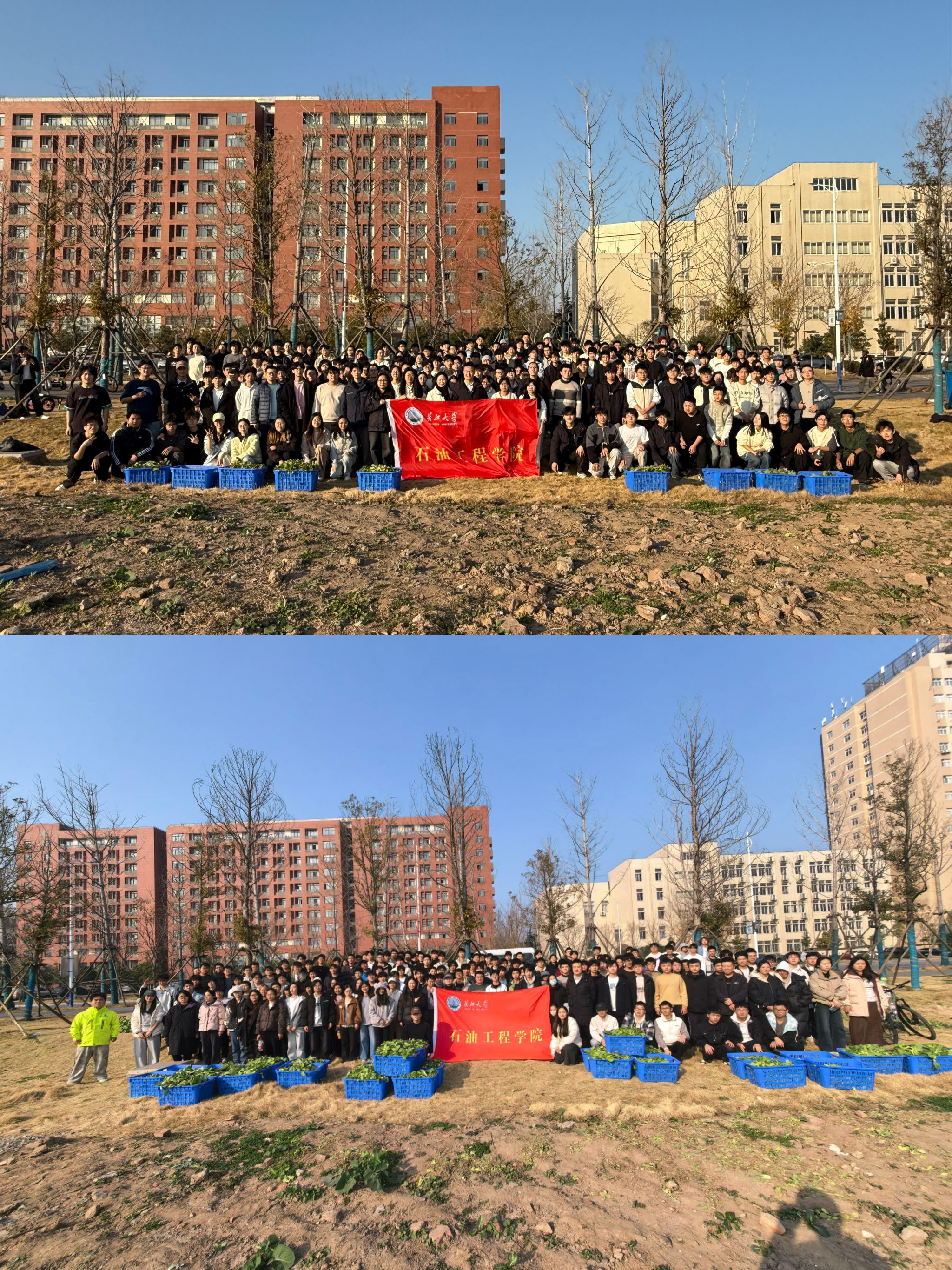 本次收获活动按专业分批次展开。13日,油气储运工程、海洋油气工程、智慧能源工程、新能源科学与工程四个专业的学生率先踏入田间,躬身采收这片承载着数月心血的绿意;15日,石油工程专业的新生也陆续完成采收。望着长势繁茂、翠色欲滴的上海青,同学们在辅导员陈金建、周雨薇的悉心指导下,有条不紊地进行采摘、分拣与整理,田间地头回荡着欢声笑语,弥漫着丰收的喜悦与青春的朝气。从秋日播撒希望的种子,到日常悉心浇灌的坚守,再到冬日硕果累累的收获,同学们全程见证上海青的生长蜕变,亲身践行了 "春种一粒粟,秋收万颗子"的劳动真谛,深刻体悟了从耕耘到收获的完整历程。