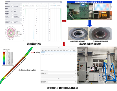 基于井筒长效密封与安全开发需求,提出了一种考虑油套管载荷、水泥环密封失效、井口抬升影响的一体化优化及控制技术,有效解决了现场井屏障失效、环空带压、井口抬升等生产难题。形成了油套管-水泥环在温度-压力-腐蚀条件下的全生命周期设计方法以及井身结构、固井质量以及生产完井参数影响下的井口抬升载荷评估方法、建立从钻井-固井-完井-生产的全过程井筒完整性保障体系。