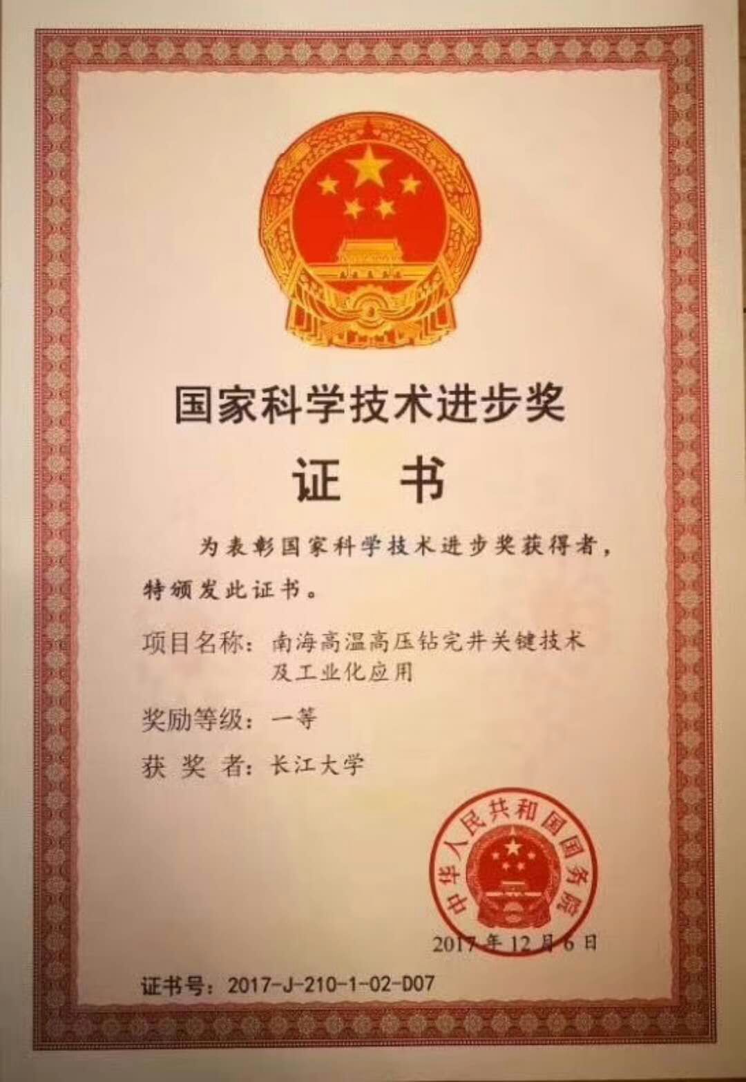 1)国家级科技进步一等奖“南海高温高压钻完井关键技术及工业化应用”