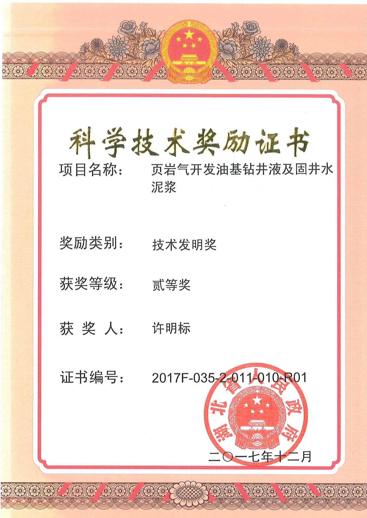 2)湖北省技术发明二等奖“页岩气开发油基钻井液及固井水泥浆”